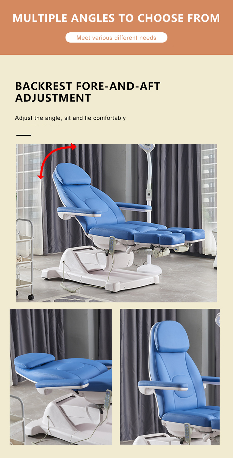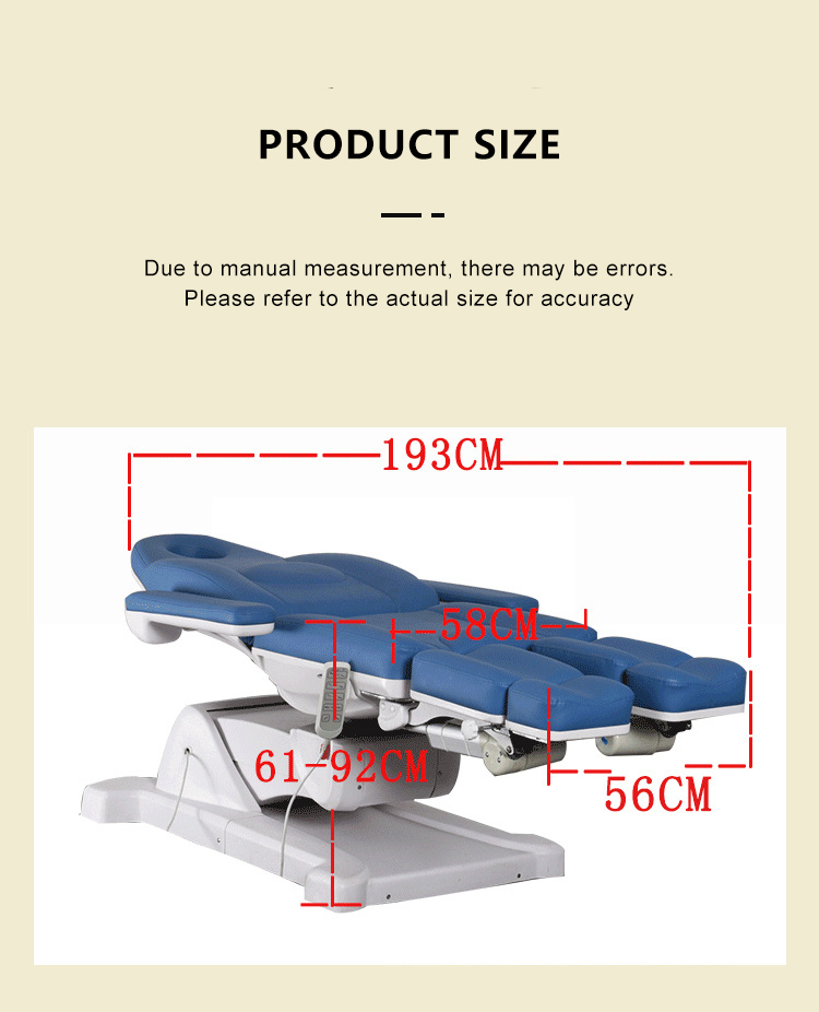 3 motors (height,footrest,backrest electric adjustment, 2 split legs manual adjustment) 5 motors (height,2 split legs,backrest,Tilt electric adjustment) |