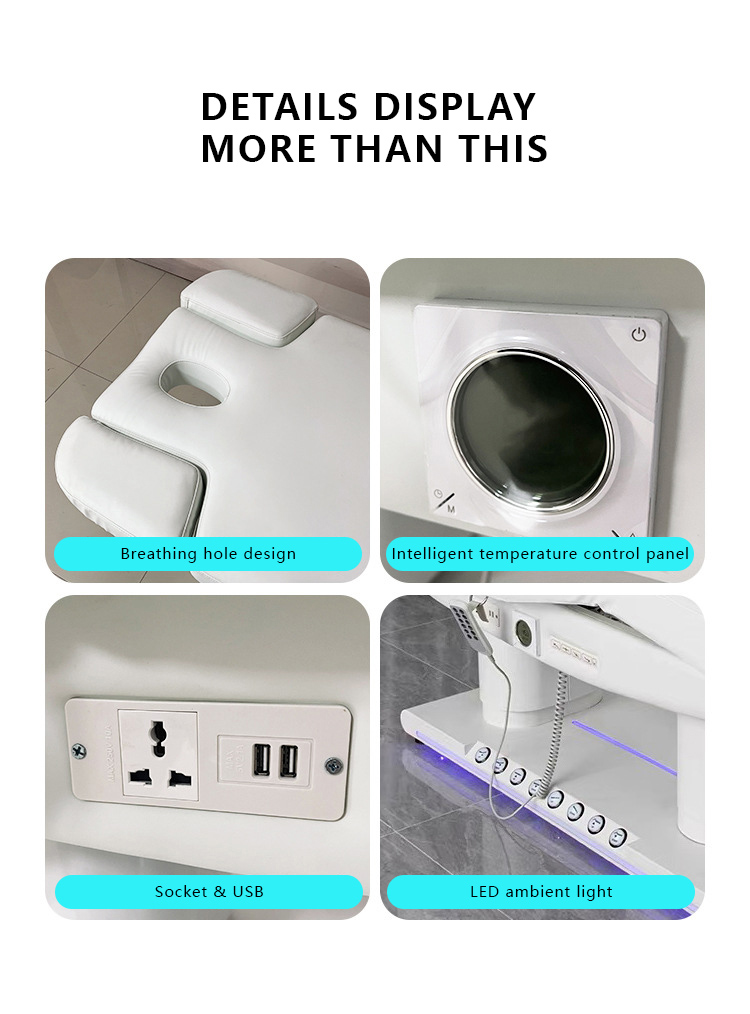 The Electric Beauty Massage Bed&Table With 4 Motors and Ambient Light Foot Control Adopts imported motor, which is easy and flexible to operate and has no noise. Which can be used for Spa,Beauty Salon,Clinic,Hospital.