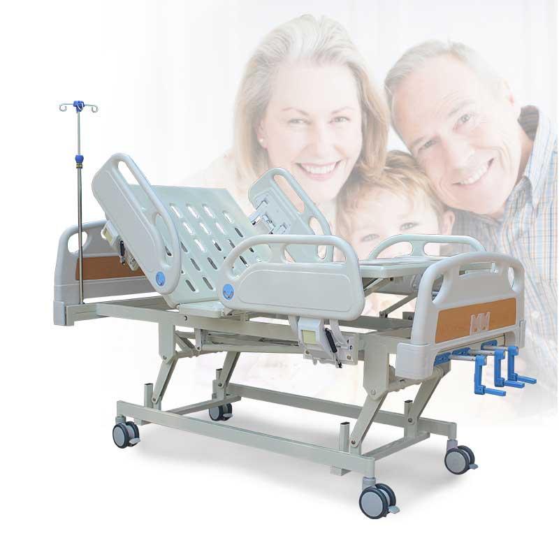 The 3 Function Hospital bed has three main function: Height Adjustable Function. Legrest Up and Down, Backrest Up and down.