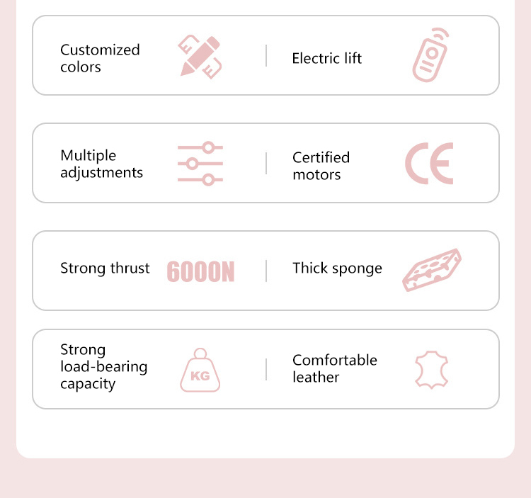 3 motors (height,footrest,backrest adjustment) 4 motors (height,footrest,backrest,Tilt adjustment) |