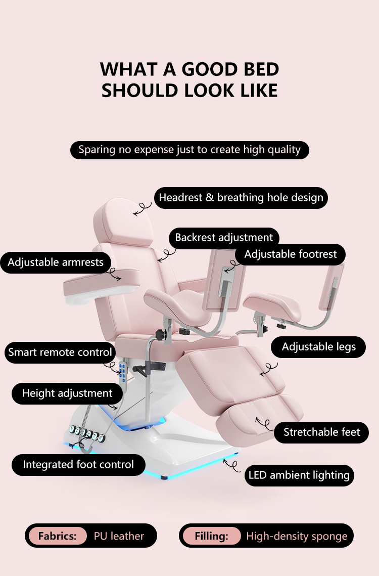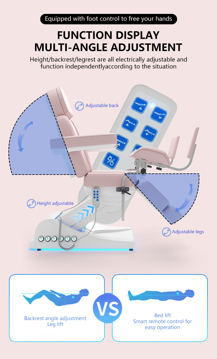 Multi-functional Gynecological Examination Bed Electric Beauty Bed with Foot Control and LED Light